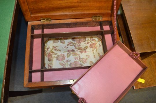 Victorian Walnut Sewing Box on Tripod Base with Floral Silk Embroidery