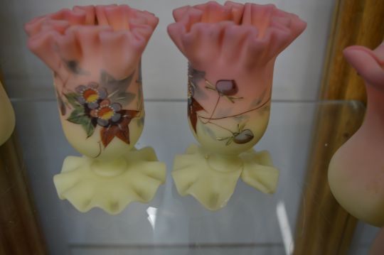 Eight Bristol Burmese Glass Vases
