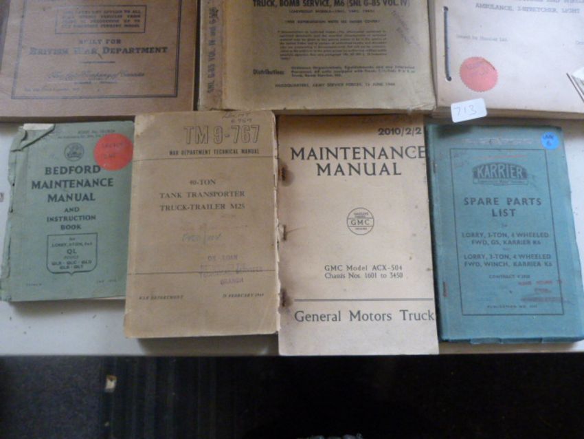Ten WWII Military Vehicle Parts and Maintenance Manuals and Pamphlets (Conditions are poor to good due to damp, viewing is recommended)