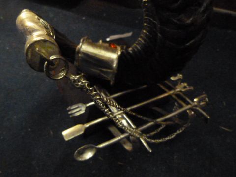 Johnstone Collection: Snuff Horn Centrepiece made of Rams Horn with Plated Mounts and Accessories