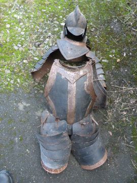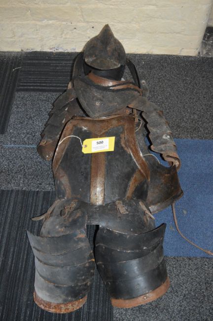 Suit of Medieval Armour Including Helmet, Breast/Back Plate, Leg & Shoulder Armour