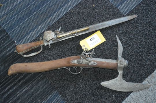 Reproduction Flintlock with Axe Attachment, and a Sword with Integrated Pistol