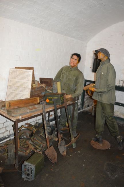 Shell Store and Magazine Exhibit with Waxwork Models, Assorted Imitation Shell Cases, Various Ammunition Boxes, etc. - Does not include 3.7 Winding Handles