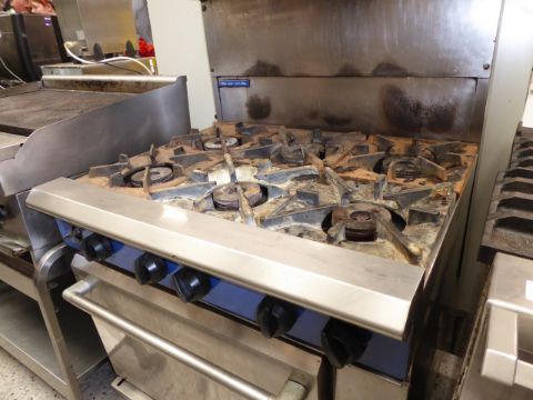 * Blue Seal 6 burner single door gas oven - with over shelf. (900Wx800Dx1400H)