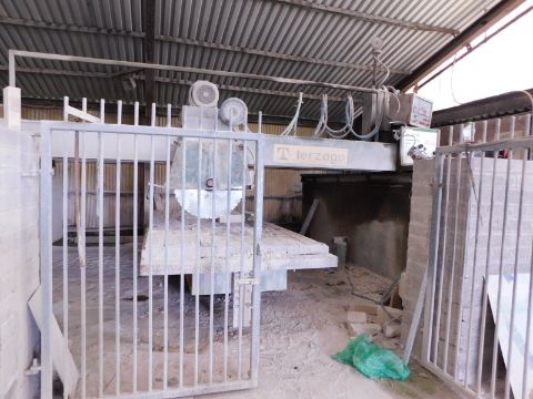 Stone processing plant including Terzago Rts 37-40 Digital Bridge saw with hydraulic table bed, Tezargo F30 Digital Bridge saw with hydraulic table bed, Brick crusher, Zattoni Radial Arm Polishing machine, Disa 3 phase stone dust extractor, Hand Stone polishing machine etc.