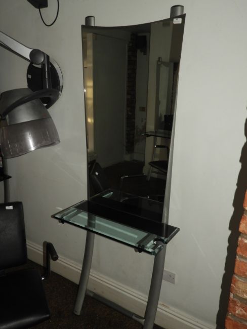 *Wella Mirror Back Contemporary Style Hair Stylist's Station with Beveled Plate Glass Shelf with Hair Dryer Cut Out 70x40x197cm