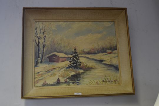 Vintage Oil on Board - Snowscape