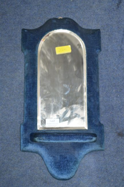 Victorian Blue Velvet Covered Mirrored Back Hall Shelf
