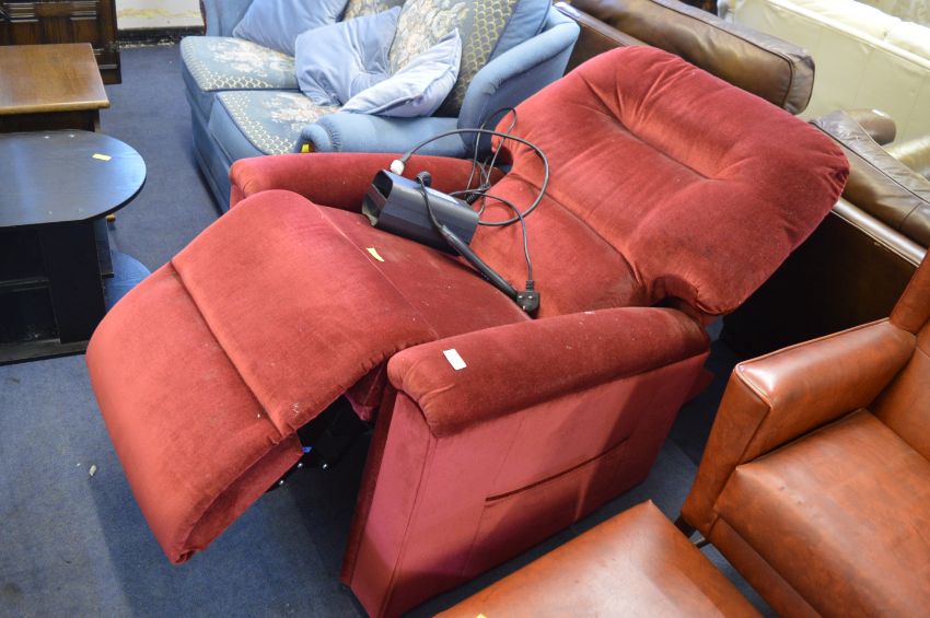 Burgundy Velvet Motorised Reclining Chair