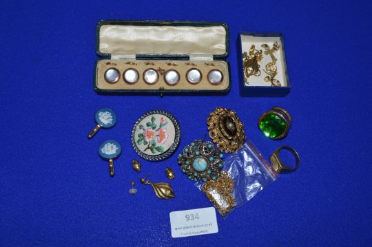 Costume Jewellery; Brooches, Collar Studs, Rings, etc.