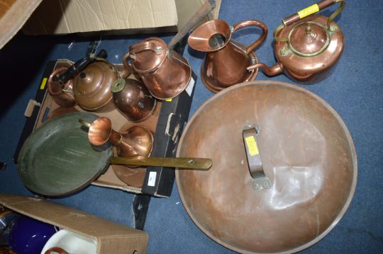 Vintage Copperware Including Kettles, Frying Pan, Jugs and a Large Pan Lid
