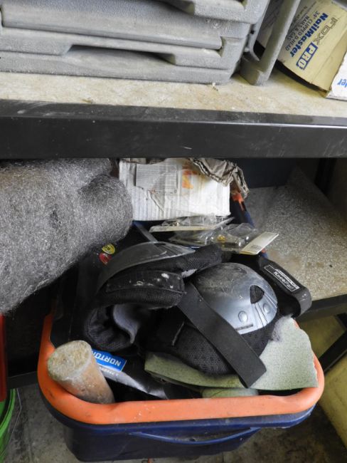 *Box Containing Assorted Hand Tools, Kneeling Pads, etc.
