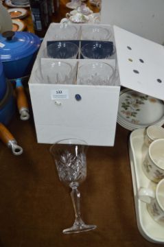 Box Set of Six Cut Glass Crystal Wine Glasses