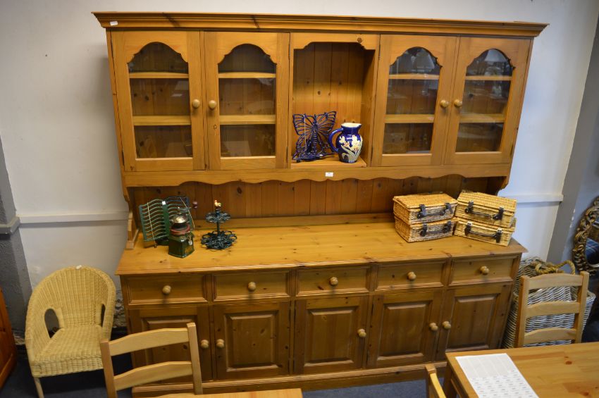 Pine Dresser with Glazed Cabinets - 7ft Length x 6ft 5" High