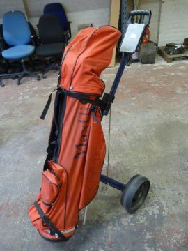 Golf Trolley and Assorted Clubs Including Warrick, Daytona, etc.