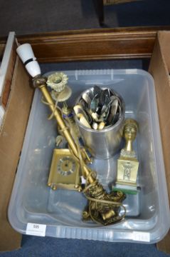 Brassware Including Lamp Base, Carriage Clock, etc.