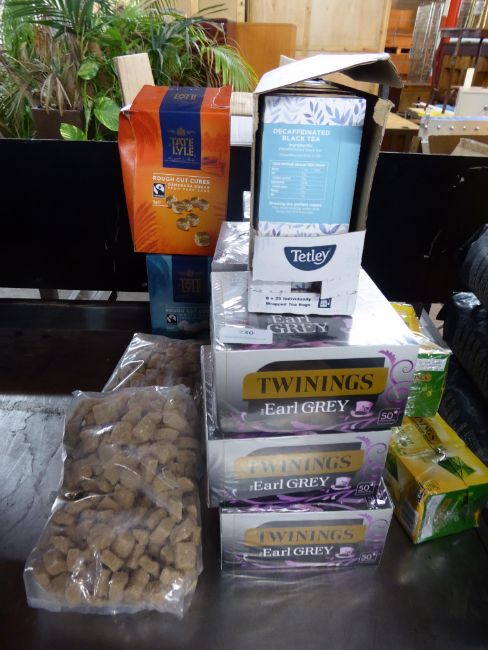 *selection of tea bags; earl grey, peppermint, decaff and 4 bags sugar cubes