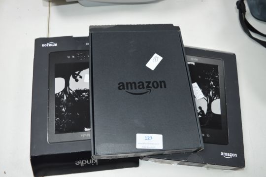 Three Amazon Kindle E-Readers (No Charging Cables)