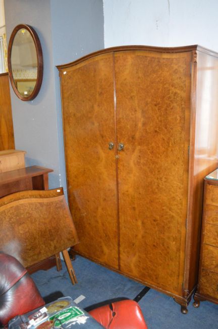 Vintage Walnut Veneered Bedroom Suite Comparing Double, Chest of Drawer, Glass Topped Mirrored Back Dressing Table and Single Bedheads