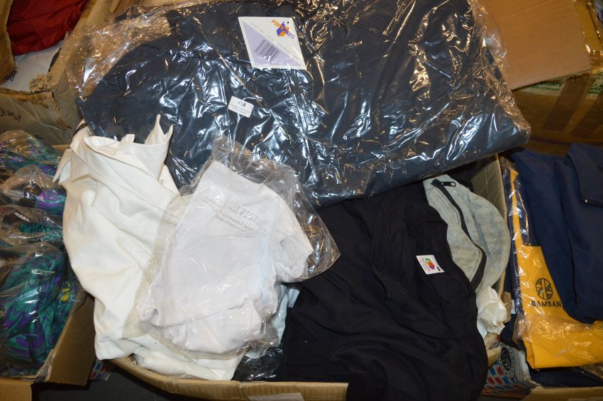 *10 Fruit of the Loom T-Shirts, 50 Handbags, 8 Assorted Tops, 2 White Umpires Overalls, 3 XL Jackets