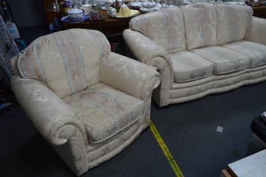 Cream Floral Three Seat Sofa and Two Armchairs