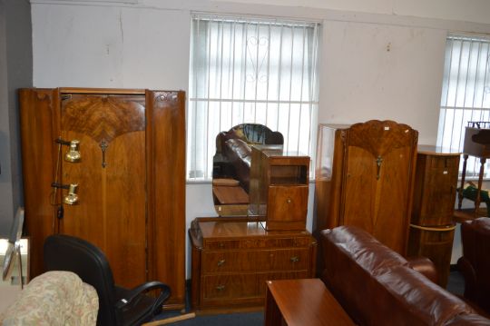 Vintage Bedroom Set; Large Wardrobe, Single Wardrobe, Mirror Back Dressing Table and a Bedside Cabinet