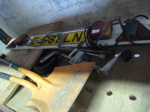 Trailer Board, Jockey Wheel, and Two Groundwork Shovels