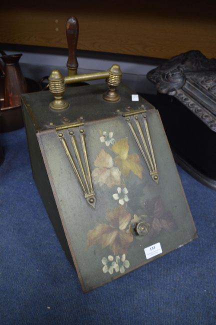 Victorian Painted Brass Purdonium Coal Box with Floral Design