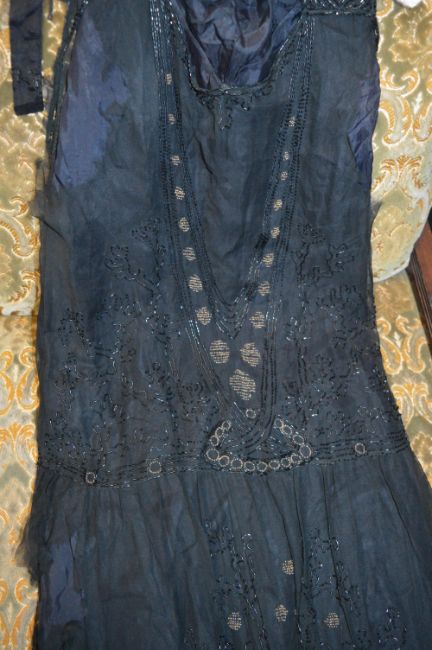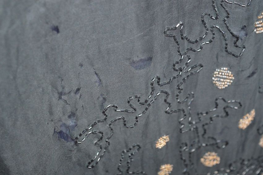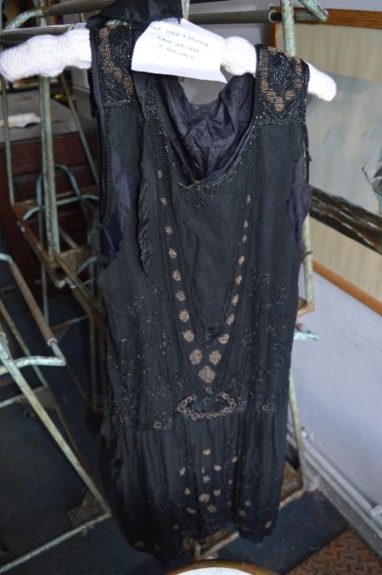 1920's Black Flapper Dress with Black Glass Bead Decoration