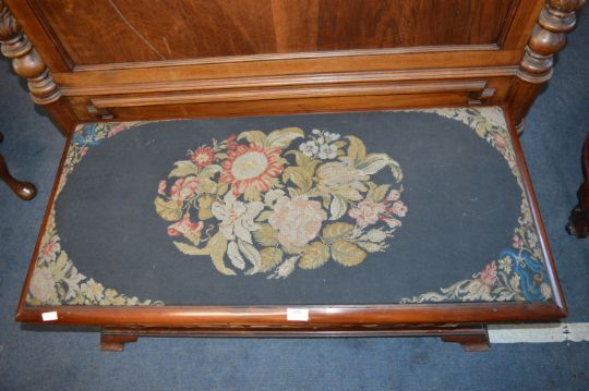 Victorian Sarcophagus Shaped Ottoman with Floral Wool Work and Curtained Sides