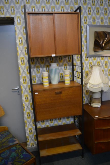 Ladderax Single Narrow Unit Black Framed with Two Teak Sections and Two Shelves