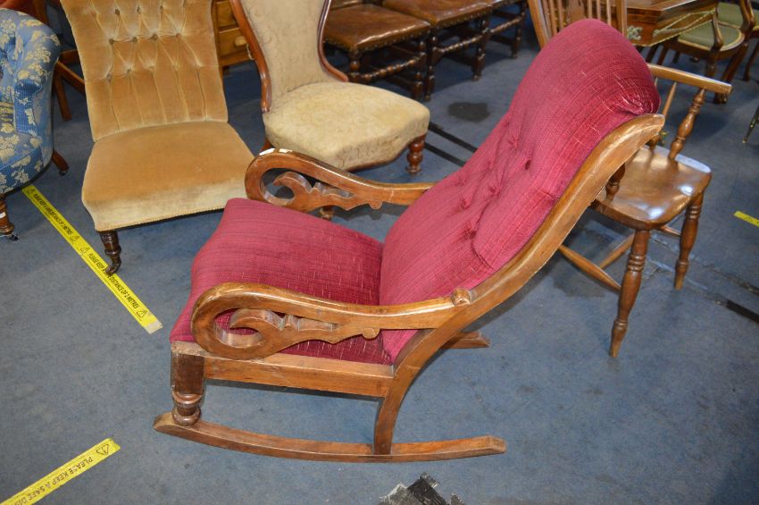 Victorian Mahogany Rocking Chair with Red Velvet Upholstery