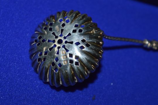 Set of Six Hallmarked Sterling Silver Apostle Spoons with Tongs and Strainer
