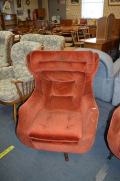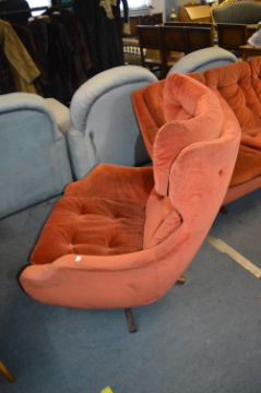 Retro Parker Knoll Three Seat Sofa and Revolving Wingback Armchair in Dusty Pink Velour