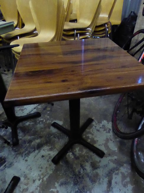*5 x high quality square tables - with walnut effect top and pedestal base (tops are easy wipe, solid composite material with high gloss finish) 600w x 600d x 750h
