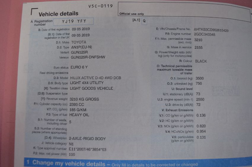 *Toyota Hilux Pick Up Reg:YJ19 YFY, Mileage: 22219