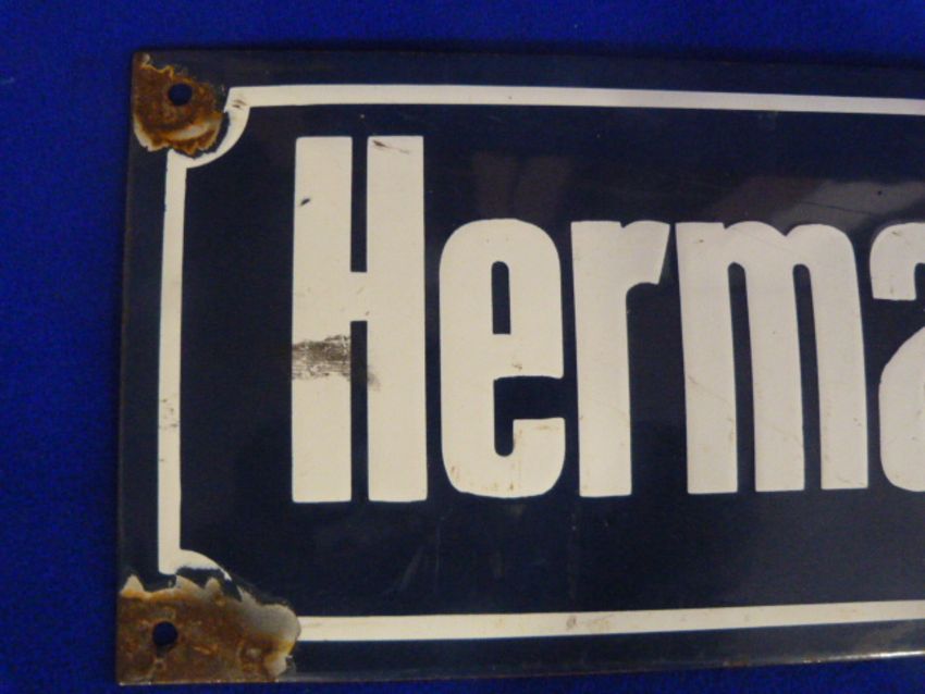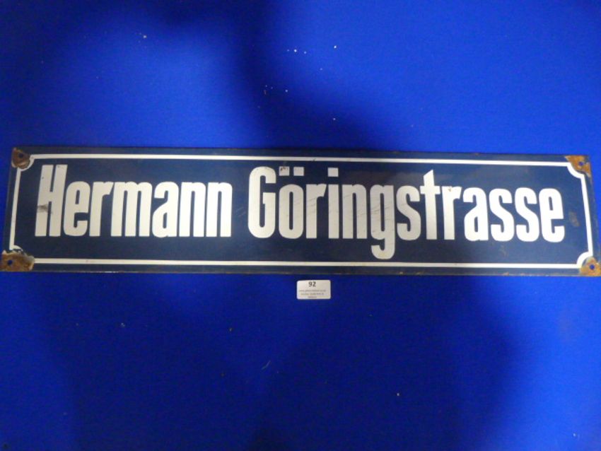 Original Enameled Street Sign "Hermann Goringstransse" ~70x15cm