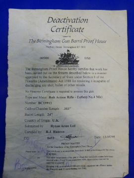 No.04 Mk.I Lee Enfield Rifle with UK Deactivation Certificate (Bidding Restriction Apply, will Require EU Deactivation at Buyers Expense)
