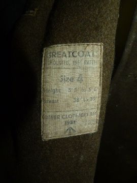 Royal Artillery Sergeant 's Greatcoat date 1951 (some damage)
