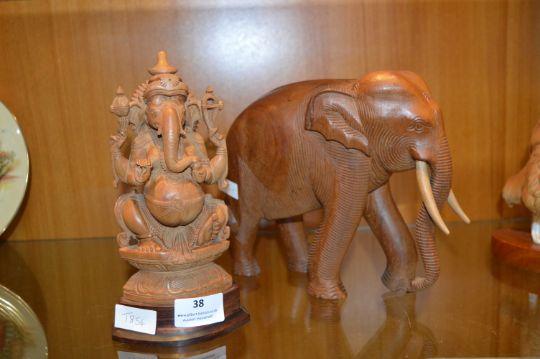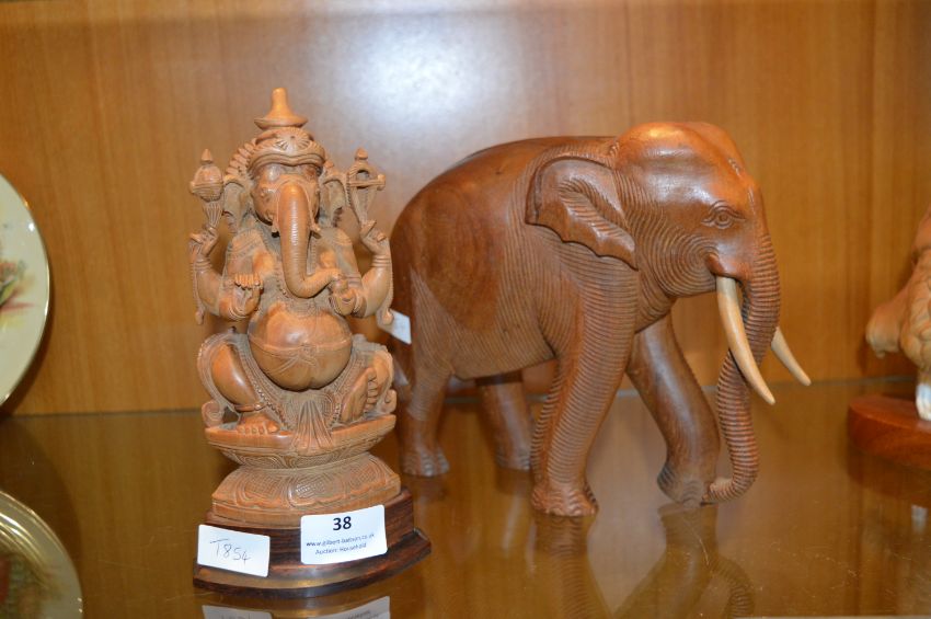 Carved Wooden Elephant and Elephant God Ganesh