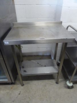 * S/S prep bench with upstand and undershelf. 750w x 500d x 950h