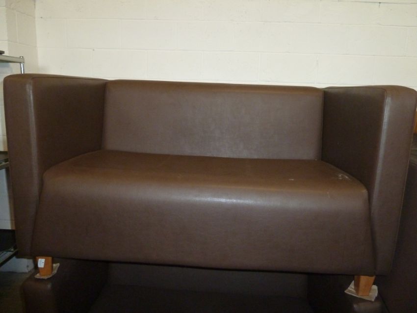 * 2 x brown leather sofas with wooden feet. 1350w x 790d x 780h