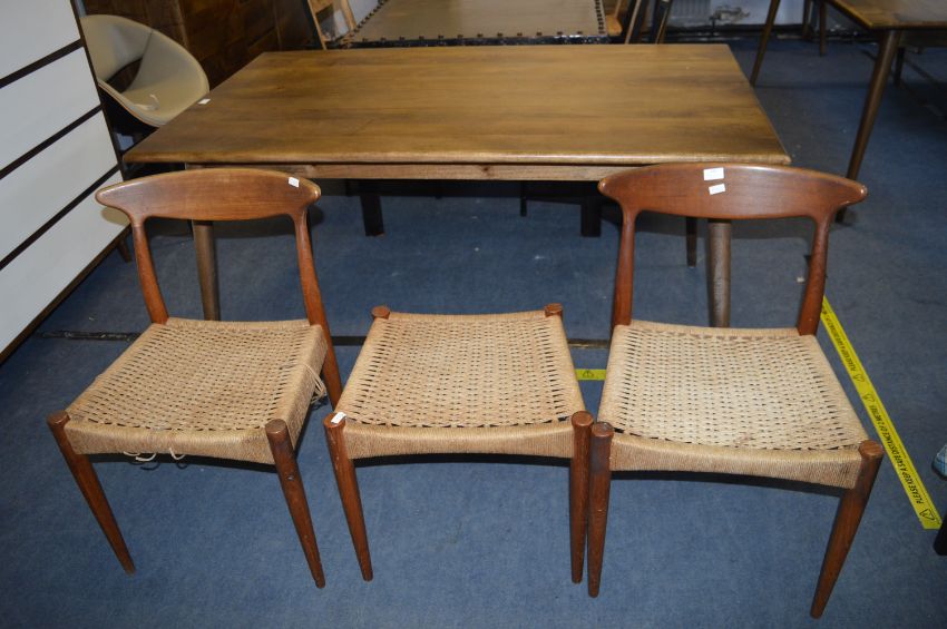 Two Retro Rattan Seated Chairs by Danish MK Manufacturer plus One Cut Down Chair