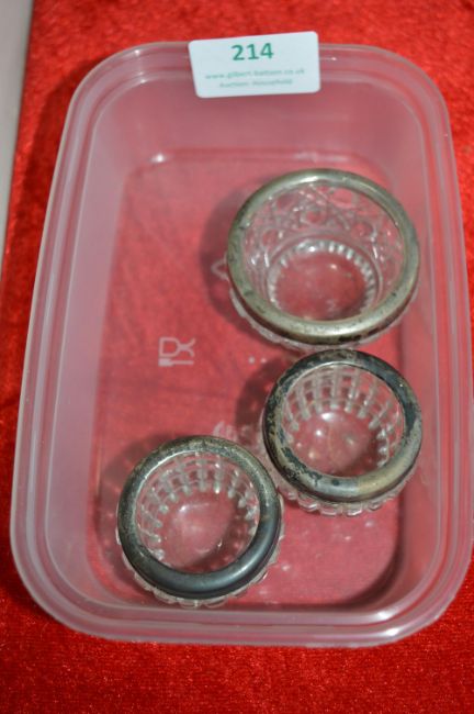 Three Glass Slats with Hallmarked Sterling Silver Rims