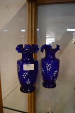 Pair of Cobble Blue Victorian Vases with Lilly of the Valley Design