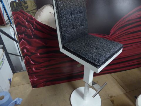 * Very heavy beauty gas lift counter stools with grey and silver speckled fabric seats with white and chrome frames. Seat height 600 - 850