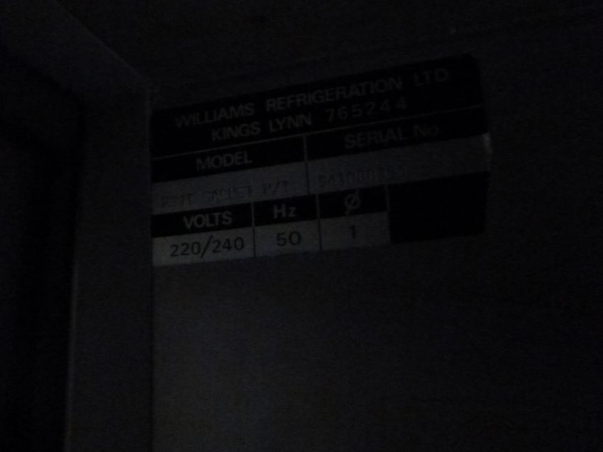 * Williams passthrough, front and rear loading upright chiller on castors - front door glass, rear door frosted. 750w x 850d x 1970h