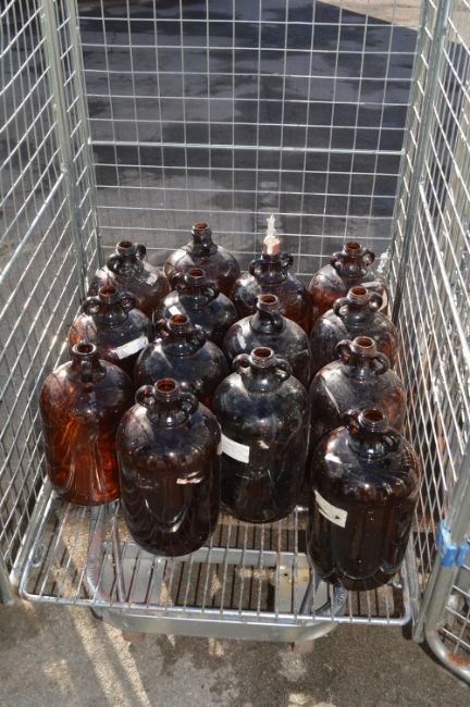 Fourteen Brown Glass 1 Gallon Demijohns