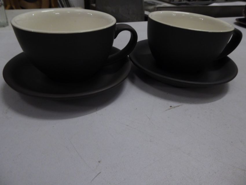 *22 x grey 'slate' mugs with cream interior with saucers
