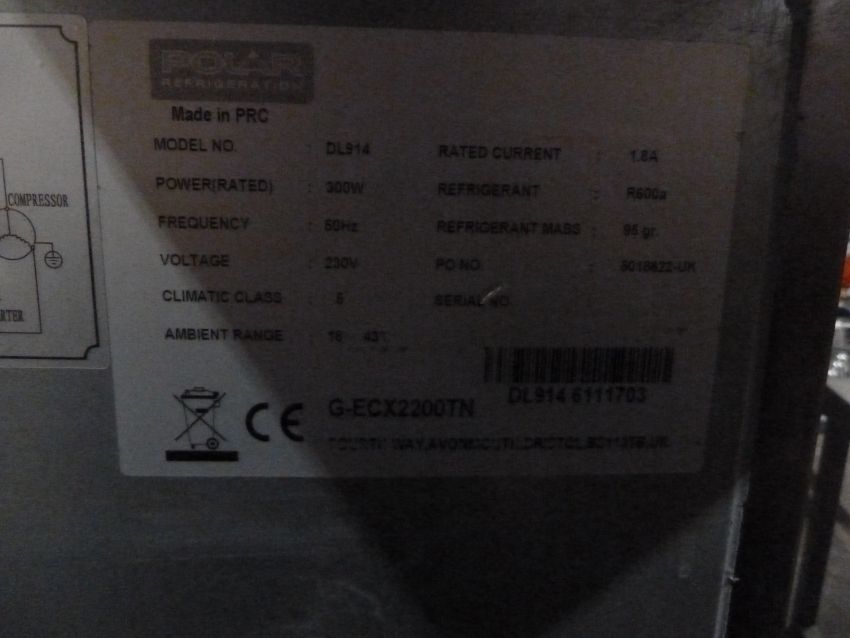*Polar 2 door bench top chiller with upstand on castors. 1360w x 700d x 940h